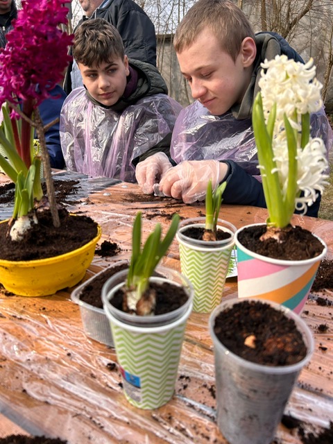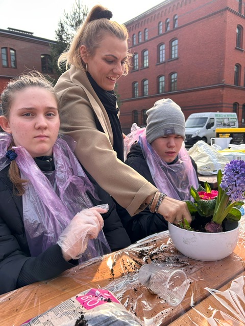 19.03.2026r. klas IV-VIII U w ramach realizacji zajęć z programu wychowawczego wzięły udział w zajęciach ogrodniczych, podczas których samodzielnie sadziły kwiaty. W trakcie zajęć uczniowie zapoznali się z budową roślin oraz odgadywali nazwy wiosennych kwiatów. Dzieci poznały podstawowe zasady sadzenia roślin oraz ich pielęgnację. Dowiedziały się jak ważna jest troska o przyrodę. Wspólna praca sprawiła wszystkim dużo radości, a efekt naszych działań już wkrótce ozdobią szkolne otoczenie.